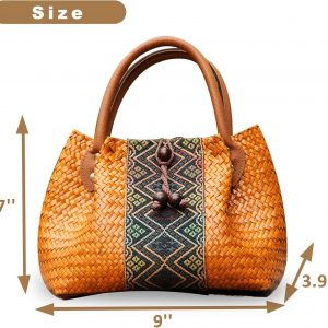 - 【Large Capacity】Beach Bag Size: 9”X7”X3.9”, the handmade bamboo bag can store sunglasses, keys, cosmetic bags, wallets and other items that you need for your daily outings, large-capacity fully enclosed professionals make these Bags store items safely without worrying about losing them
