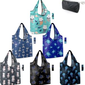 BeeGreen Reusable Grocery Bags Shopping Bags for Women Ocean Animals i##e##s: Sea Turtle ^^ Lovers Gifts ^^ Bulk 6 Pack ^^ 50LBS ^^ X-Large ^^ Shells ^^ Seal ^^ Mermaid Scale ^^ Whale :i##e##s