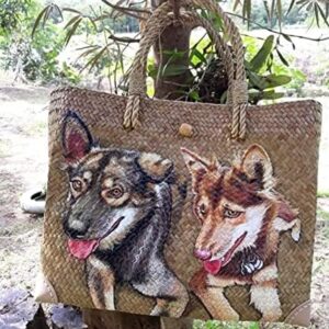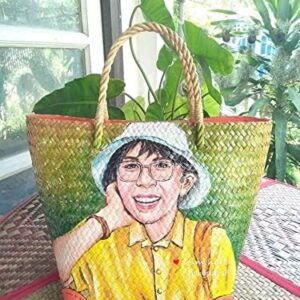 Custom, Made To your Own Order Portrait Painting Woven Straw Bags Summer Beach Tote Bag for Women 100% Handmade (A02)
