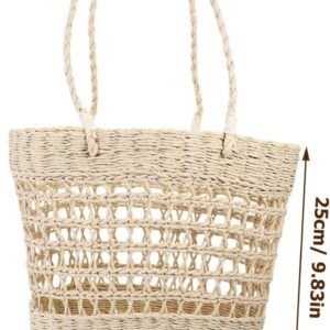 Garneck Woven Beach Tote Bag for Women Hollow Design Aesthetic Straw Handbag Portable and Lightweight Summer Tote for Travel Vacation and Daily Use