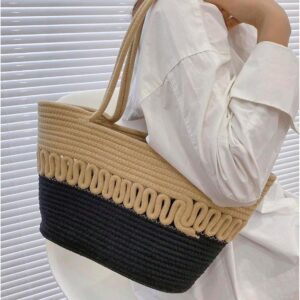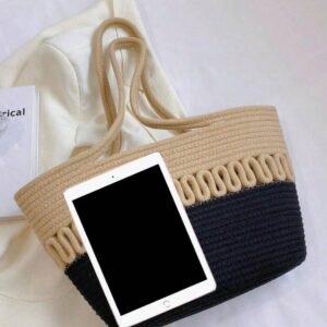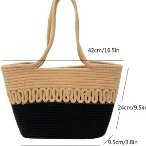 Elevate your summer style with this fashionable woven straw bag. Crafted from high-quality straw, it boasts a solid color design with a literary flair, perfect for daily use, vacations, and leisure activities. The large capacity interior provides ample space for all your essentials, while the braided rope handles offer a comfortable and secure grip. Measuring approximately 14 inches wide and 12 inches tall (35.6 cm x 30.5 cm), this tote is both spacious and versatile. Whether you’re heading to the beach, running errands, or simply enjoying a day out, this woven straw bag is a stylish and practical choice. Its lightweight and durable construction make it an ideal companion for any summer adventure. Embrace the season with this chic and functional accessory.