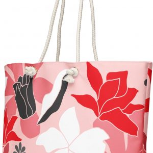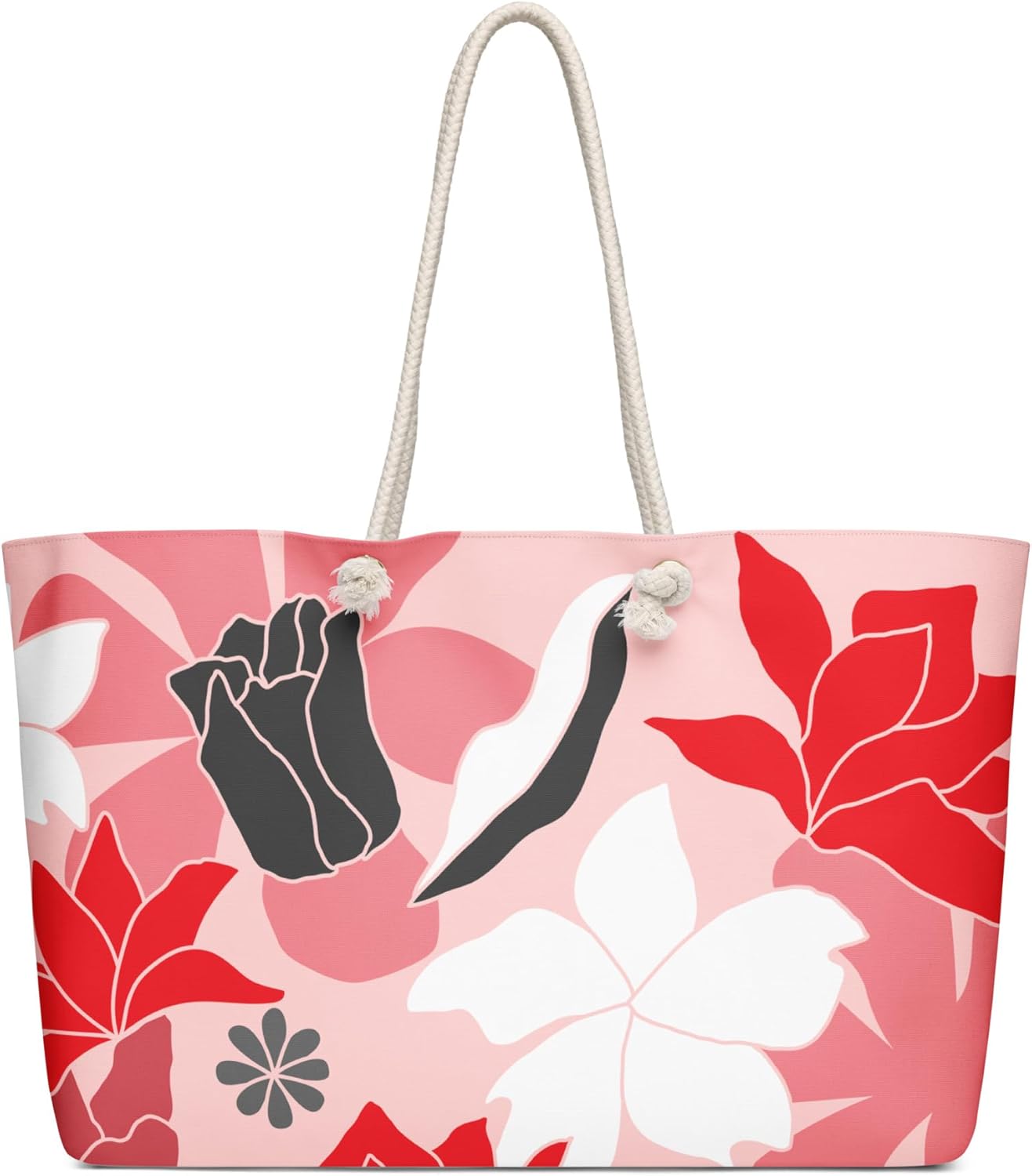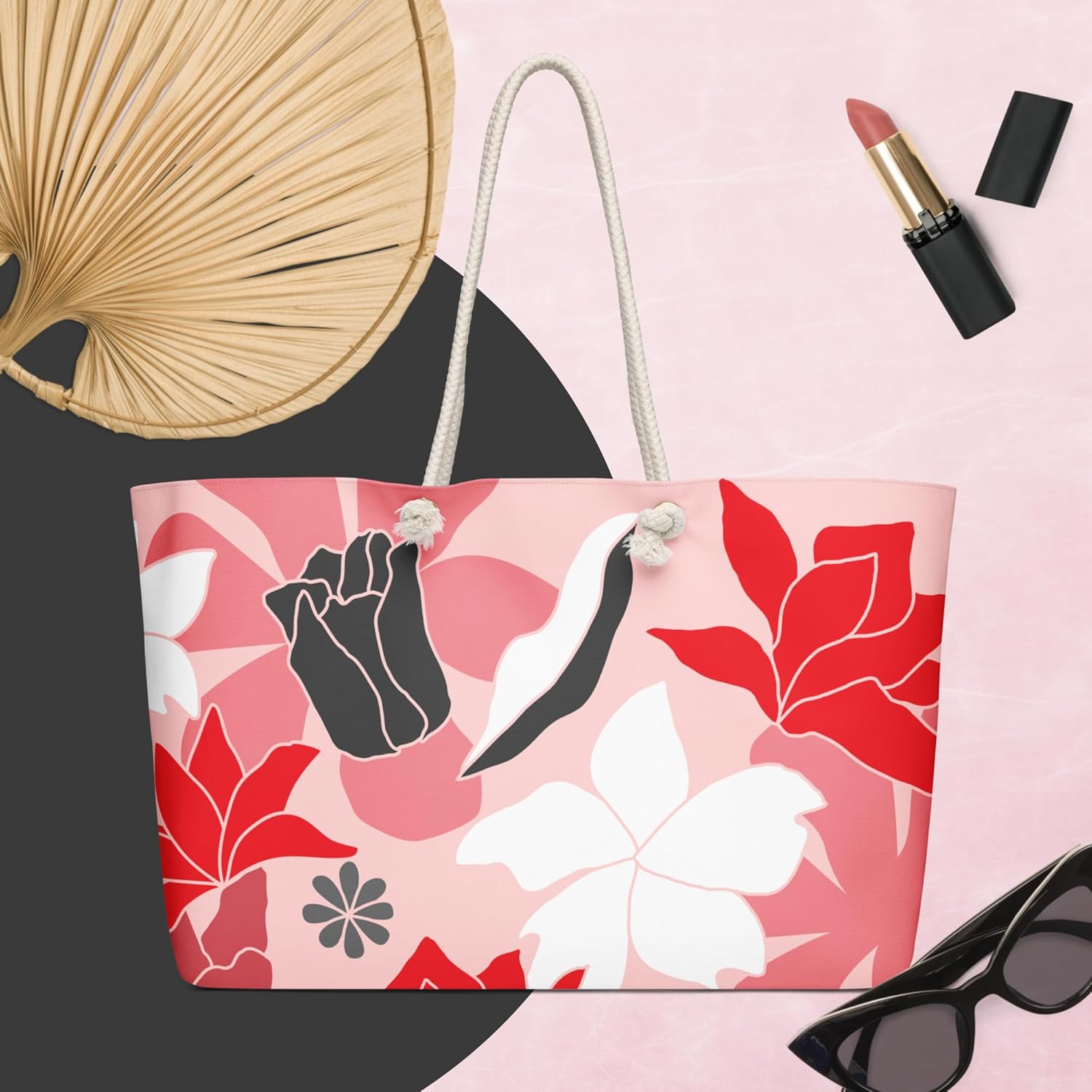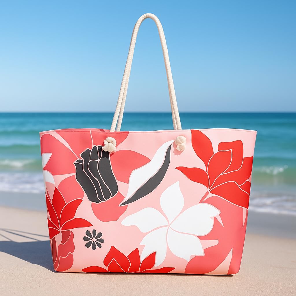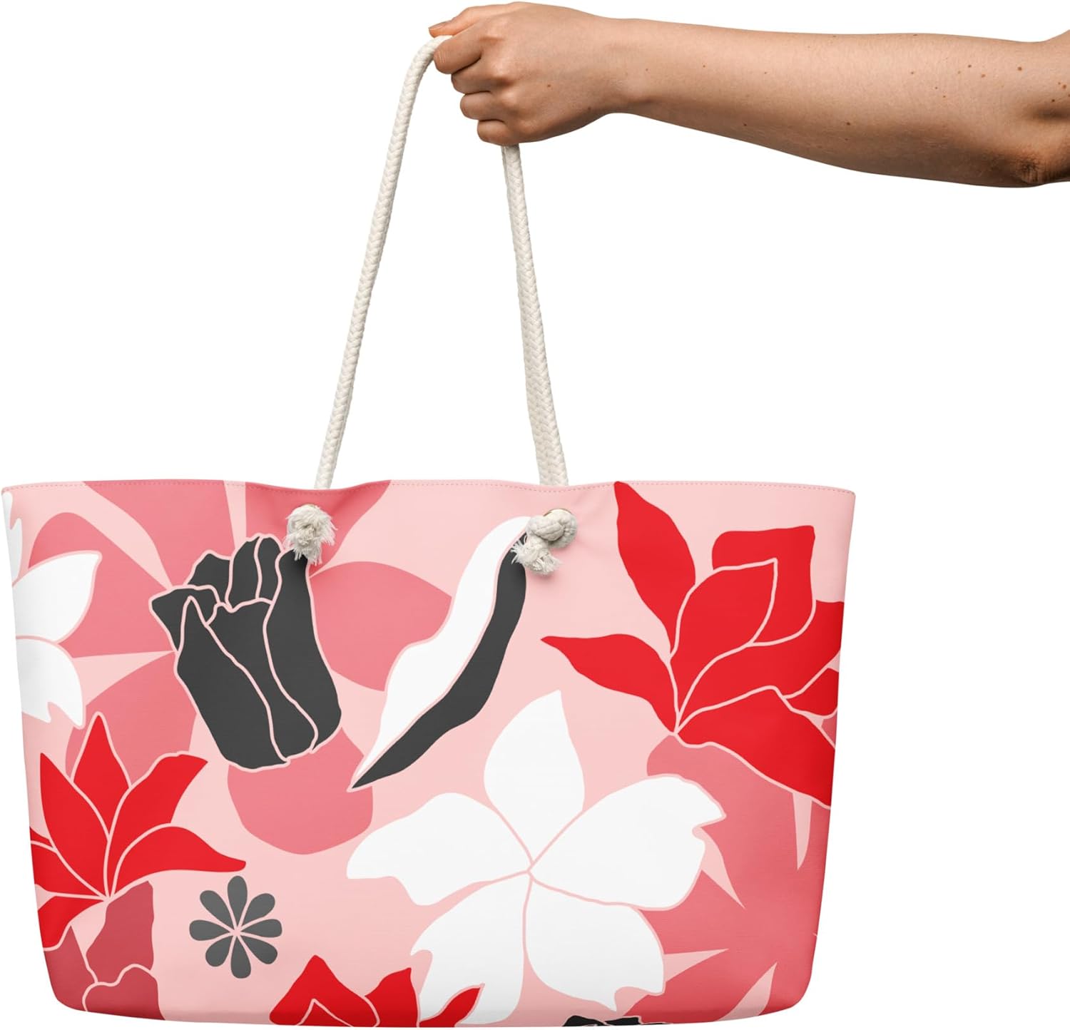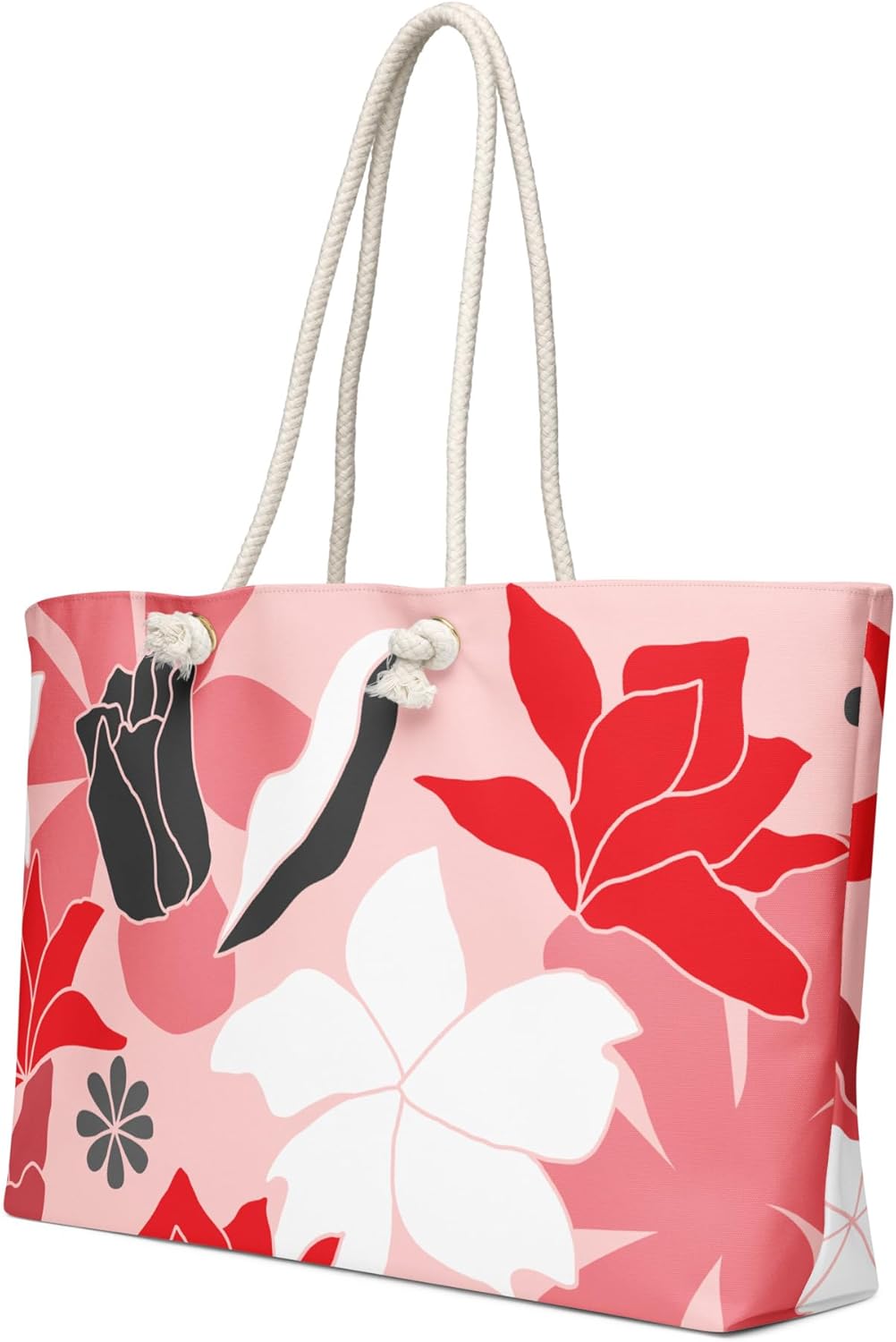 Large Beach Tote Bag for Women – Pink Floral Print | Summer Vacation Bag with Rope Handles | Lightweight Canvas Shoulder Bag | Pool, Travel, Beach Essentials