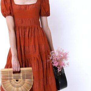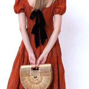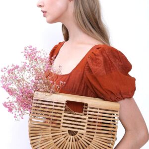 Miuco Womens Bamboo Handbag Handmade Large Tote Bag Straw Beach Bags Beach Purse Size