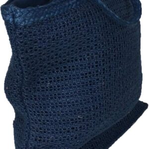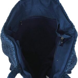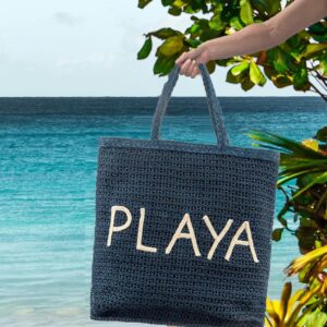 Playa Embroidered Jute Large Beach Tote Bag – Navy Blue Woven Summer Carryall for Women
