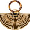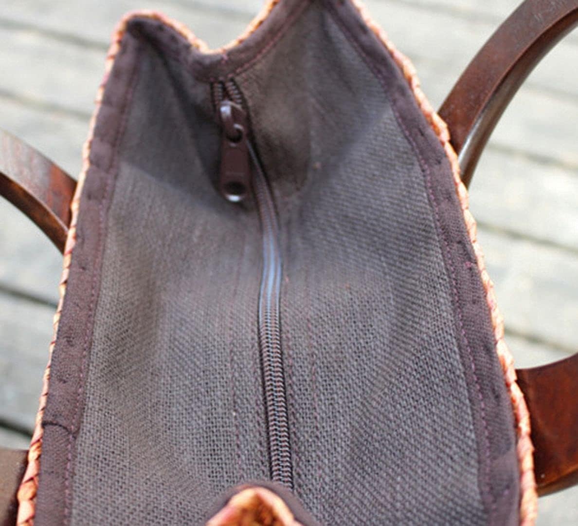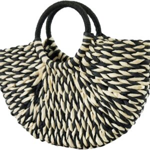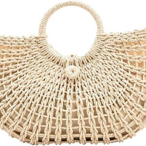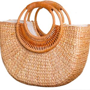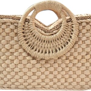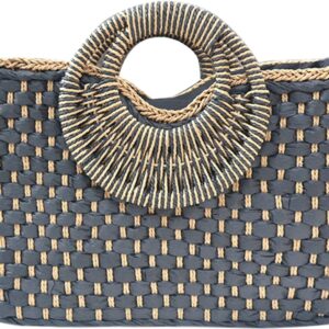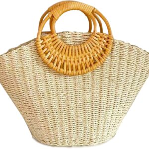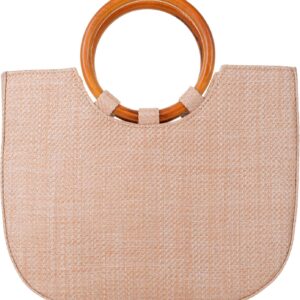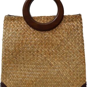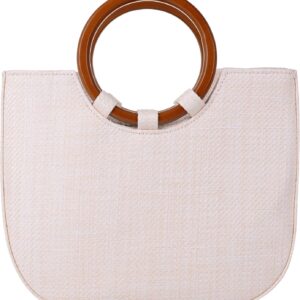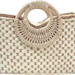 QZUnique Hand-woven Straw Bag Women Summer Beach Handbag Purse Retro Rattan Tote Clutch Travel Bag with Wood Round Top Handle