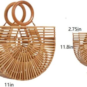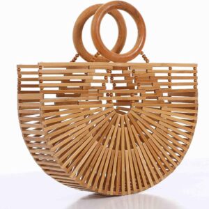 RULER TRUTH Women’s Top Handle Bamboo Handbag Summer Beach Tote Bag, Natural Bamboo Handmade Purse