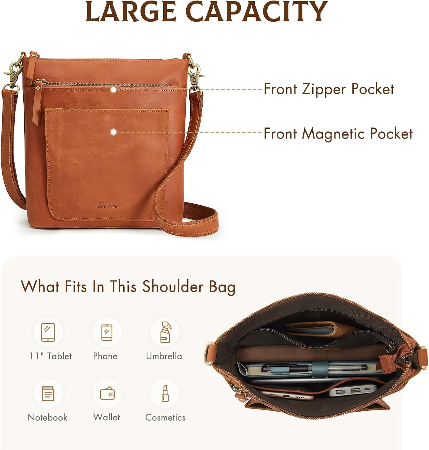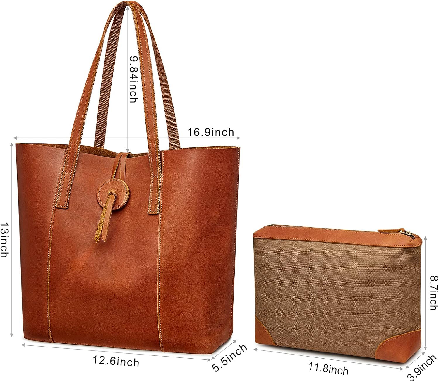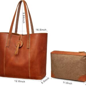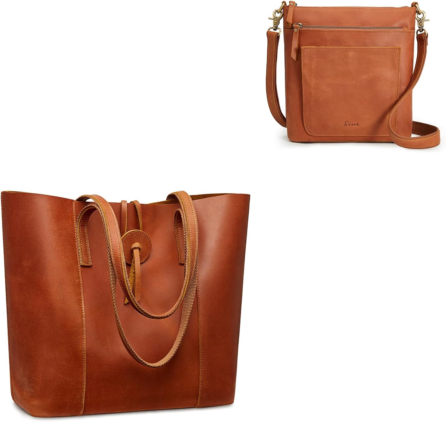 S-ZONE Women Leather Tote Bag Shoulder Handbag Bundle with Crossbody Bucket Purse with Multi-pockets
