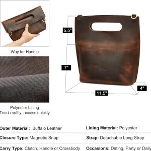 - 【Long-term Use】Premium grade crazy horse leather (100% genuine leather) and bronze tone rustproof hardware as materials which looks so retro, classic, delicate and chic. Don’ t worry about breaking or tearing issue with the TRIPLE REINFORCED stitching and nail at the the handles. There are 4 metal rivets under bottom to protect it from blots and abrasions, the leather and braid combined handles can bring more comfortable experience to your shoulders