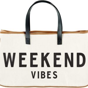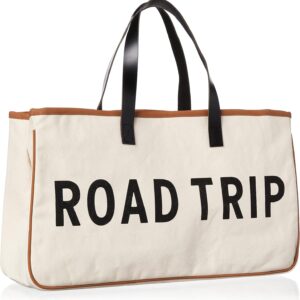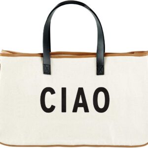 Santa Barbara Design Studio Tote Bag Hold Everything Collection Black and White 100% Cotton Canvas with Leather Handles