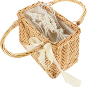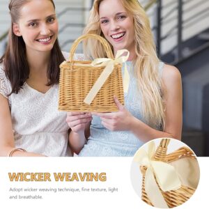Wicker Handbag Bow Rattan Woven Bag