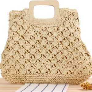 1 PCS Straw Woven Travel Beach Tote Bag Set;