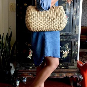This classic handwoven straw studios water hyacinth tote/straw bag is a charming addition to your everyday casual look ,a perfect bag for a romantic beach getaway , summer time purse! Hand woven with natural water hyacinth ( water sea grass) harvested from the countryside in the Thailand. ^^^^^^^^^^^^^^^^^^^^^^^^^^^^^^^^^^^^^^^^^^^^^^^^^^^^^^^^^^^ Measurements: 16.5 Inches L (side-to-side) x 9.5 inches H (top-to-bottom) x 5.5 Inches Width Handles: 13 Inches (to the top of the bag) Weight: 13.83 Material: Dried Water Sea Grass Straw, Burlap Lining ,Zip Closure. ^^^^^^^^^^^^^^^^^^^^^^^^^^^^^^^^^^^^^^^^^^^^^^^^^^^^^^^^^^^ The handwoven straw bag / handwoven straw tote can carry your picnic essentials or for any casual event. This special tote features a double layered weaving technique and top of the bag is attached to the base with two braided straps and has a zip closure. The inside is lined with a thin burlap fabric. The straw tote can fit your everyday essentials such as a laptop, books,shopping items, phone and wallet. A perfect gift for yourself and anyone you love. This is a unique product. All of our straw bags / straw handbags /straw totes are made from water sea grass found in Thailand. The water sea grass is harvested and dried. Then it is hand-woven together and a special lacquer is painted to preserve it’s elements of the straw bag. Our straw bags / straw handbags are designed to withstand moisture and sun. This is a versatile bag that can be used throughout the year to store all your essentials or for a day out to the park or beach. All of our pieces are handmade with love! *Before purchase please read our policies for more information* Please read the description of this item before purchasing and view our shop photos for more information. Your purchase indicates that you have read and understood the item’s description and agreed to our store policies. Should you have any other questions or concerns about your bag, please conta