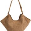 Trendy Women Woven Shoulder Bag Summer Hollow Out Straw Hand-held Bags Tote Bag Large Capacity Beach Vacation Shopping Bags
