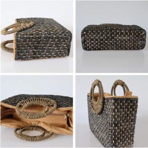 The handbag has a round handle, and the double-hardened design is not easy to deform, and it is durable during use. It is woven from high-quality straw, densely woven and carefully sewn lining.