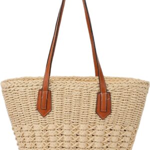 - ersatile, simple and fashionable straw woven bags, large capacity single shoulder paper rope woven bags, vintage beach bags. This is the best gift for the person you love.