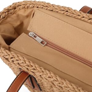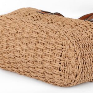 - This bag is woven with natural paper rope, which is durable. Lined with polyester cotton lining, shoulder straps made of PU leather, fashionable and sturdy.